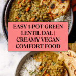 A comforting and flavorful 1-pot green lentil dal made with aromatic spices, coconut milk, and fresh vegetables. This easy-to-make vegetarian Indian-inspired dish is perfect for a nutritious meal served with rice or naan.