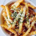 - Add the finishing touch: Once cooked, transfer the fries to a large bowl and immediately sprinkle with freshly grated Parmesan cheese and chopped parsley. Toss gently so the warm fries melt the cheese slightly and evenly distribute the parsley. Serve immediately for best taste and texture.