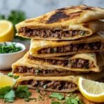 Arayes are a delicious Lebanese dish featuring pita bread stuffed with spiced meat and pan-fried until crispy. This recipe offers a flavorful mix of lamb or beef with aromatic spices, paired perfectly with a creamy whipped tahini yogurt sauce. It’s a quick and satisfying meal perfect for any occasion.