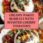 This delightful baked burrata recipe combines creamy cheese with sweet, roasted cherry tomatoes and fragrant herbs. It’s an easy yet elegant dish perfect for sharing as an appetizer or light meal.
