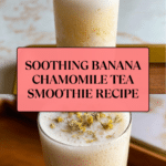 Keywords: Banana smoothie, chamomile tea, calming drink, healthy smoothie, honey banana smoothie, relaxing beverage, dairy-free smoothie option, herbal tea smoothie