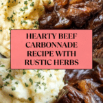 A rich and hearty Beef Carbonnade recipe featuring tender beef short ribs slow-baked with caramelized onions, mushrooms, and aromatic herbs in a savory beef broth. This classic Belgian-inspired stew is perfect for cozy dinners, delivering deep flavors and melt-in-your-mouth meat.