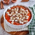 Keywords: scalloped sweet potatoes, baked sweet potatoes, holiday side dish, sweet potato casserole, marshmallow topping, pecans, comforting side
