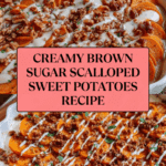 This Best Scalloped Sweet Potatoes recipe features thinly sliced sweet potatoes baked in a rich brown sugar and cream sauce, flavored with warm cinnamon, nutmeg, and vanilla. Topped optionally with gooey mini marshmallows, this comforting casserole makes a perfect sweet side dish for holidays or cozy dinners.