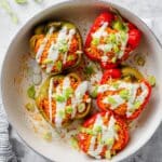 Keywords: Buffalo chicken stuffed peppers, dairy free, low carb, paleo, Whole30, keto, healthy dinner, stuffed bell peppers