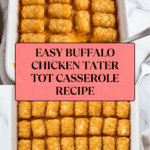 This Buffalo Chicken Tater Tot Casserole is a deliciously cheesy and spicy comfort dish that’s perfect for family dinners or game day. It combines tender shredded chicken with creamy sauce, spicy buffalo flavor, and crispy tater tots on top. Easy to assemble and bake, this casserole will quickly become a favorite.