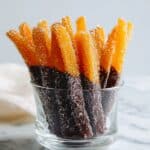 - Coat and Optionally Chocolate Dip: Coat the dried orange peels in additional granulated sugar. If desired, dip each strip in melted chocolate and let cool until the chocolate hardens.