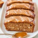 Keywords: banana bread, caramel macchiato banana bread, caramel banana bread, espresso banana bread, glazed banana bread, coffee flavored banana bread, quick bread dessert