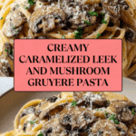 This Caramelized Leek and Mushroom Gruyere Pasta combines tender fettuccine or linguine with sweet, caramelized leeks, earthy cremini mushrooms, and a rich, creamy Gruyere cheese sauce. Enhanced with garlic and a splash of white cooking broth, this elegant dish is perfect for a cozy yet sophisticated meal.