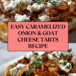 These caramelized onion and goat cheese tarts are a delightful combination of sweet, jammy onions and tangy creamy cheese tucked inside flaky puff pastry. Perfect for entertaining or a special treat, they come together effortlessly yet look and taste like a gourmet appetizer.