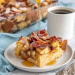 - Serve: Serve the casserole warm, garnished with crumbled cooked bacon if desired, and additional maple syrup on the side to add more sweetness according to taste.