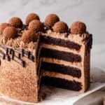 - Decorate and Serve: Drizzle additional syrup on top and decorate with coffee truffles, shaved chocolate, or desired garnishes. For clean slices, use a hot knife to cut the cake and wipe the knife between each slice before serving. Enjoy!