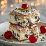 - Step 7: Let the dessert cool for at least 30 minutes before cutting into squares. Garnish with optional chopped pistachios, maraschino cherries, or extra chocolate chips before serving.