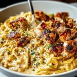 This comforting one-pot Cajun Chicken Alfredo Orzo combines tender diced chicken breast seasoned with Cajun spices, sautéed onions, garlic, and optional bell peppers, all simmered together with orzo pasta in a rich mixture of chicken broth and creamy Alfredo sauce. Ready in just 30 minutes, it’s a hearty, flavorful dinner perfect for busy weeknights.