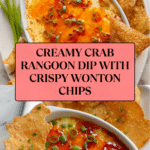 Keywords: Crab Rangoon Dip, Crab Dip, Appetizer, Party Dip, Baked Crab Dip, Wonton Chips, Cream Cheese Dip