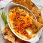 - Serve and Garnish: Garnish the dip with sliced green onions and serve immediately with the crispy wonton chips for dipping.