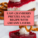 Keywords: Cranberry Pretzel Salad, layered dessert, cranberry Jello, pretzel crust, creamy dessert, holiday dessert, layered salad