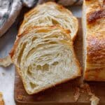 This Croissant Bread recipe combines the buttery, flaky layers of classic croissants with the comforting shape of a loaf, perfect for slicing and enjoying with your favorite spreads. The dough is enriched with honey and butter, laminated with cold butter for that signature flakiness, then baked to a golden, tender finish.