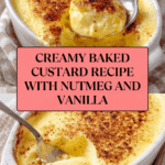 Keywords: baked custard, classic custard, creamy dessert, vanilla custard, nutmeg custard, water bath custard, chilled dessert