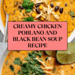 Keywords: Chicken soup, Poblano pepper soup, Black bean soup, Creamy chicken soup, Mexican chicken soup, Easy soup recipe, Small batch soup