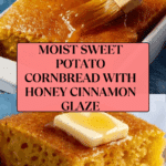 This easy sweet potato cornbread recipe combines the warm flavors of autumn spices with the sweetness of mashed sweet potatoes, creating a moist, tender, and flavorful cornbread. Perfect as a side dish for any meal, this cornbread features a buttery glaze topped with honey and cinnamon for an extra touch of sweetness.