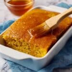 This easy sweet potato cornbread recipe combines the warm flavors of autumn spices with the sweetness of mashed sweet potatoes, creating a moist, tender, and flavorful cornbread. Perfect as a side dish for any meal, this cornbread features a buttery glaze topped with honey and cinnamon for an extra touch of sweetness.