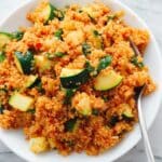 A quick and easy gluten-free tomato and basil quinoa risotto, perfect for a nutritious vegetarian or vegan meal. This recipe combines fresh and sun-dried tomatoes, fragrant basil, and tender zucchini cooked together with quinoa for a deliciously light and healthy dish.