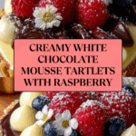 These Elegant White Chocolate Mousse Tartlets feature a delicate, creamy white chocolate mousse nestled in a crunchy graham cracker crust. Topped with fresh raspberries, a drizzle of caramel sauce, and optional edible flowers, they make a stunning and delicious dessert for special occasions or everyday indulgence.