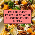 A vibrant and wholesome Fall Harvest Pasta Salad that combines roasted butternut squash and Brussels sprouts with tart cranberries, crunchy pecans, and creamy feta. This salad balances savory, sweet, and tangy flavors, perfect for a seasonal side dish or light meal, served chilled or at room temperature.