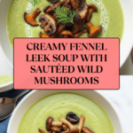 This creamy and flavorful Fennel Leek Soup with Mushrooms combines the sweetness of leeks and fennel with the earthy depth of mixed wild mushrooms. Slowly simmered and pureed to silky perfection, this comforting soup is garnished with tender sautéed mushrooms and fresh fennel fronds for a delightful texture and aromatic finish. Perfect as a warming appetizer or light meal, it highlights simple ingredients with an elegant flair.