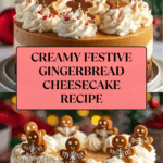 This Festive Gingerbread Cheesecake combines the warm spices of gingerbread cookies with creamy, smooth cheesecake for a perfect holiday dessert. Featuring a spiced gingerbread cookie crust and a rich molasses-infused filling, it’s a delightful treat topped with optional whipped cream and gingerbread cookie garnish.