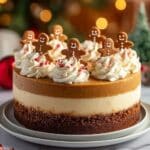 This Festive Gingerbread Cheesecake combines the warm spices of gingerbread cookies with creamy, smooth cheesecake for a perfect holiday dessert. Featuring a spiced gingerbread cookie crust and a rich molasses-infused filling, it’s a delightful treat topped with optional whipped cream and gingerbread cookie garnish.