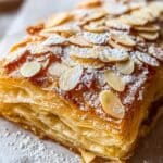 This Flaky Sweet Almond Pastry is a delightful and elegant treat featuring tender puff pastry filled with a rich almond paste mixture. Braided to perfection and topped with sliced almonds and a dusting of powdered sugar, it offers a perfect balance of flaky texture and sweet, nutty flavor. Ideal for breakfast, brunch, or a sophisticated dessert.