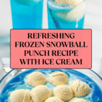 Keywords: Frozen Snowball Punch, Blue Hawaiian Punch, party punch recipe, vanilla ice cream punch, summer drink, festive beverage