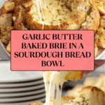 Keywords: baked brie, garlic butter, bread bowl, appetizer, party food, sourdough bread, melted cheese