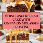 This classic Gingerbread Cake is moist and warmly spiced, infused with ginger, cinnamon, cloves, and sweet molasses. It is topped with a luscious cinnamon molasses frosting that complements the rich flavors of the cake perfectly. Ideal for holiday gatherings or any cozy occasion.