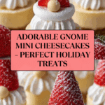 These Gnome Mini Cheesecakes are a delightful no-bake Christmas treat that combines creamy cheesecake with festive decorations. Perfect for holiday gatherings, they bring a playful twist to a classic dessert with charming strawberry gnome hats.