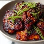 This Gochujang Chicken recipe features tender boneless, skinless chicken thighs marinated in a flavorful blend of Korean gochujang paste, soy sauce, honey, rice vinegar, garlic, and ginger. The chicken can be either baked or pan-cooked to achieve a perfectly caramelized crust and juicy interior. Finished with toasted sesame oil, spring onions, and sesame seeds, this dish offers a balance of sweet, spicy, and savory notes perfect for an easy weeknight dinner or meal prep.