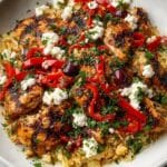 This Greek Chicken Casserole is a flavorful and comforting one-pan meal featuring tender chicken breasts, fresh vegetables, and orzo pasta cooked in a zesty lemon and herb-infused chicken broth. Finished with crumbled feta, kalamata olives, and fresh parsley, it offers a perfect balance of Mediterranean flavors baked to perfection.