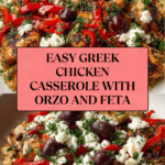 This Greek Chicken Casserole combines tender chicken, fresh vegetables, and aromatic herbs with creamy feta and tangy olives. It’s a comforting and flavorful one-dish meal perfect for cozy dinners any night of the week.