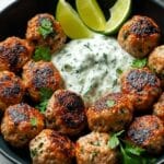 Keywords: Greek chicken meatballs, tzatziki sauce, Mediterranean recipes, healthy chicken meatballs, Greek yogurt sauce