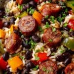 Keywords: black beans and rice, sausage recipe, one pot meal, smoked sausage, easy dinner, comfort food, Southern recipe