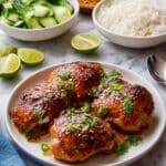 Keywords: Indonesian chicken, grilled chicken thighs, roasted chicken, Ina Garten recipes, peanut butter marinade, soy sauce chicken