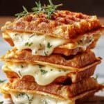 This Irresistible Grilled Cheese Chaffle is a low-carb twist on a classic comfort food favorite, combining crispy cheese waffles with melted American cheese inside for a gooey, satisfying sandwich perfect for a quick meal or snack.