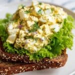 Store the egg salad in an airtight container in the refrigerator for up to 2 days. Give it a gentle stir before serving. It’s best enjoyed chilled and should not be left out at room temperature for more than two hours.
