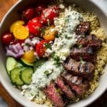 This Mediterranean Steak Bowl combines tender sirloin steak with fresh vegetables and creamy tzatziki for a vibrant, wholesome meal. It’s a perfect balance of protein, grains, and flavorful ingredients that will satisfy your cravings and nourish your body.