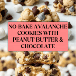 No-Bake Avalanche Cookies are a delicious and easy-to-make treat combining creamy white chocolate, peanut butter, crispy Rice Krispies, gooey marshmallows, and melty chocolate chips. These no-bake cookies require minimal prep and chilling time, making them perfect for quick homemade snacks or dessert options without needing the oven.