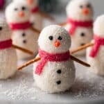 These delightful No-Bake Snowman Truffles are a festive and easy-to-make holiday treat. Made with dairy-free sweetened condensed milk and shredded coconut, these sweet coconut snowmen are creamy, chewy, and beautifully decorated with vegan white chocolate, colorful icing, pretzel stick arms, and candy scarves. Perfect for winter celebrations or as a charming edible gift, these truffles require no baking and can be prepared quickly with simple ingredients.