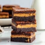 Keywords: peanut butter stuffed brownies, peanut butter brownies, chocolate peanut butter dessert, fudgy brownies, baked brownies, easy brownies recipe
