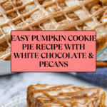 Keywords: pumpkin cookie pie, pumpkin dessert, pumpkin pie recipe, cookie pie, fall dessert, white chocolate chips, pecans, spiced glaze